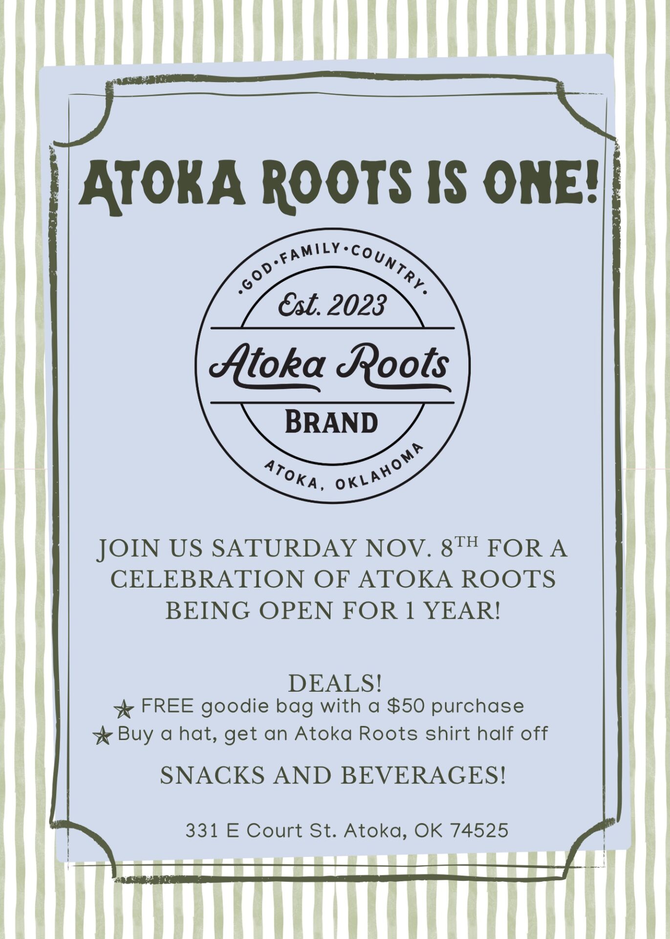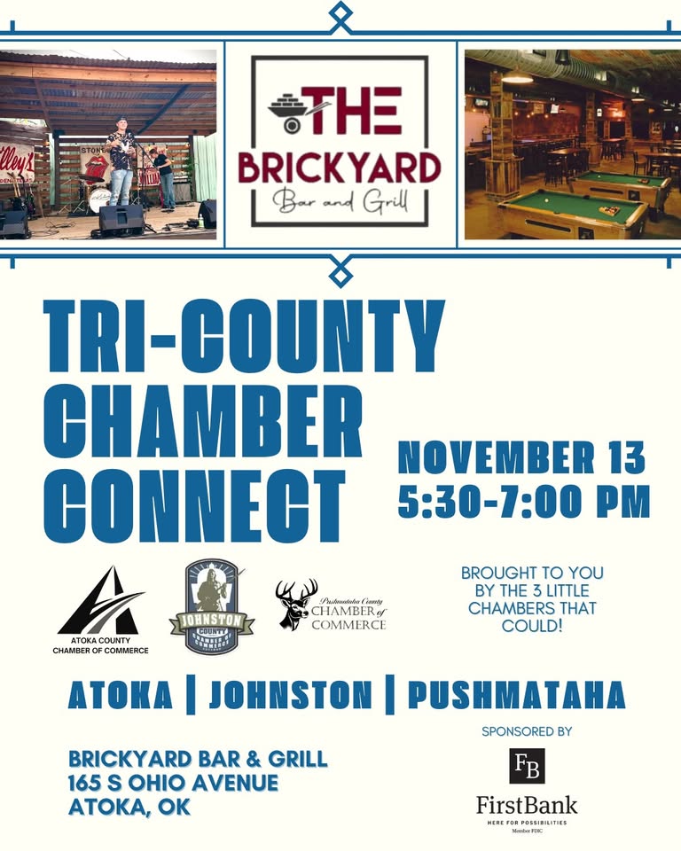 To promote economic growth in the greater Atoka, OK area by focusing on development and promotion of businesses, and by improving the quality of life.